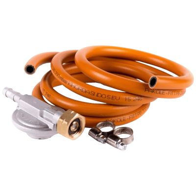 Set uključuje specijalno gumeno crijevo dužine 1,2 metra sa plastičnim omotačem i dvije stezaljke koje možete koristiti za sigurno povezivanje, na primjer, roštilja Barbecook na LPG cilindar.