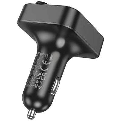 HOCO E85 auto punjač s dvostrukim priključkom za brzo punjenje i odašiljačem u jednom.