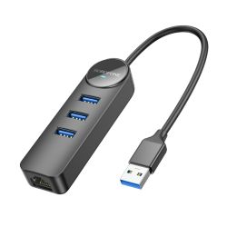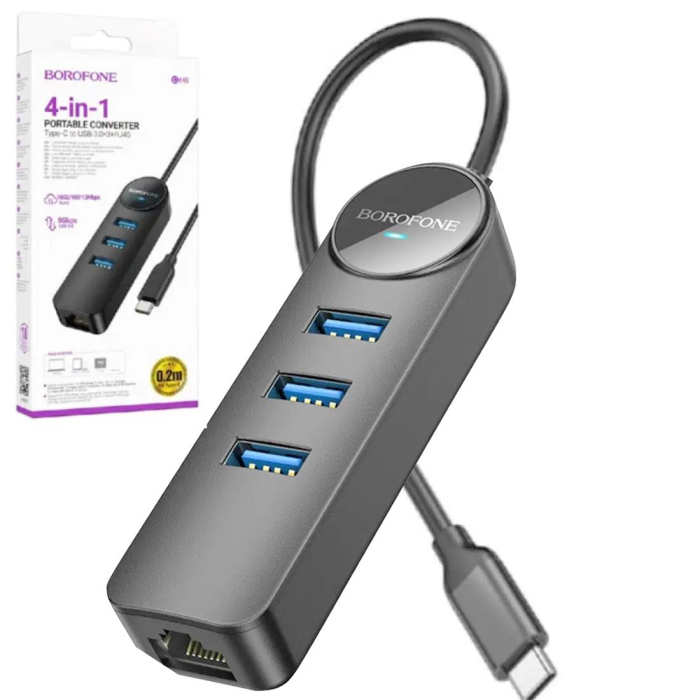 USB HUB + GLAN Ethernet Adapter BOROFONE DH6 Erudite 4-in-1, USB3.0x3 +RJ45