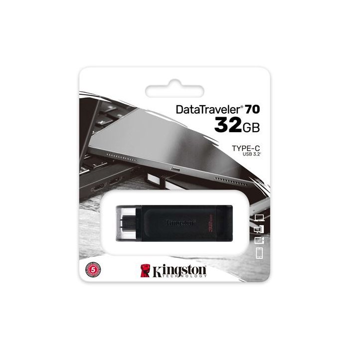 USB memorija Kingston DT70, 32GB , USB 3.1, TypeC, Brzina čitanja 110 MB/s , Brzina pisanja 15 MB/s , Boja : Tamno Sivo. Idealan za Vaše prenosne uređaje - tablete, mobilne telefone i ostale uređaje koji posjeduju USB-C.
