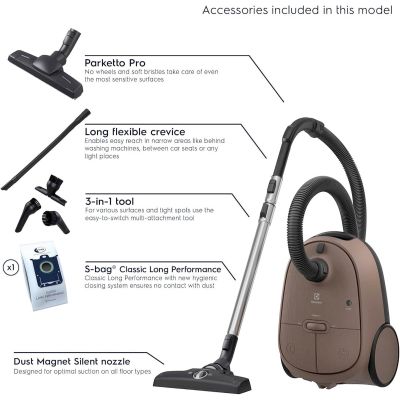 Cistac Clean 600 Bagged kombinira automatski nacin rada na podu na mlaznici s intuitivnom dostupnošcu za beskompromisnu izvedbu i manje prekida. Dizajn Dust Magnet Silent mlaznice omogucuje visoku snagu usisavanja sitne prašine tako da možete usisati do 100 % prašine koja se skuplja u otvorima. Sada možete jednostavno cistiti pomocu funkcije nožne kontrole. Podesite premotac kabela, gumb za ukljucivanje/iskljucivanje i postavku napajanja bez korištenja ruku. HEPA sustav filtracije može filtrirati do 99,99 % cestica sitne prašine, grinja i alergena velicine 0,3 mikrona kako bi isporucio cišci izlazni zrak.