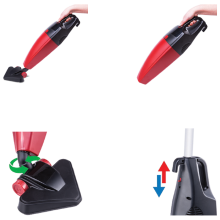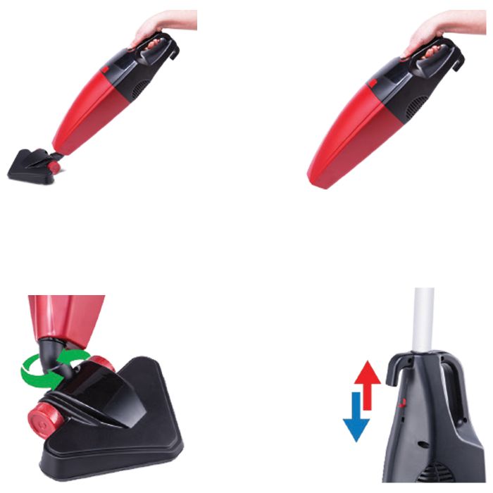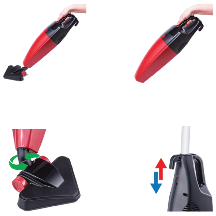 Usisivač sa posudom, vertikalni, sa svojim specifičnim dizajnom koristan u svakom kutu Vaše kuće, rotirajuća trokutasta potplata koja se može odvojiti, jednostavan za rukovanje, uklanjanjem metalne ručke pretvara se u mali ručni usisavač. Snaga motora 800W ( ekvivalent 1600W ), usisna snaga 210 W, protok zraka 37 l/sec, zapremina posude za prašinu 2 lit, dužina napojnog kabla 5 met