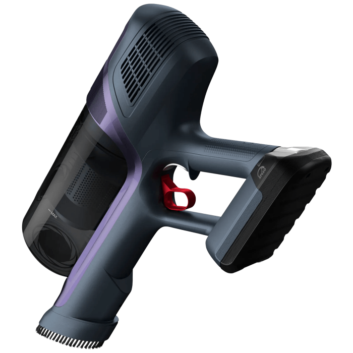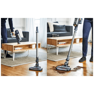 Dugotrajna 45-minutna baterija isporučuje se s jednostavnim postavkama - automatskim ECO brzinom i brzinom za sve površine, zajedno s funkcijom okidača BOOST za sve vaše potrebe dubinskog čišćenja - kako bi u trenu ponudila lagano i prijenosno rješenje za čišćenje besprijekornog doma.