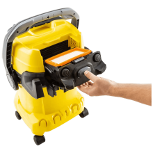 Višenamjenski usisivač WD 5, ekstremno velika snaga usisavanja, ali ipak štedi energiju. Sa velikim plastičnim spremnikom zapremine 25 l, jedinstvenom tehnikom vađenja filtera i funkcijom čišćenja filtera.