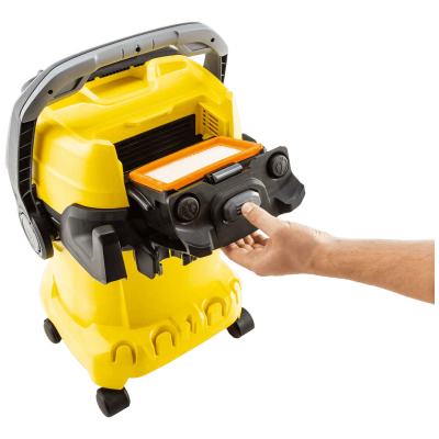 Plosnati naborani filtar prikladan je za neprekidno mokro i suho usisavanje bez potrebe za zamjenom filtera. Zahvaljujući patentiranoj tehnologiji uklanjanja filtera, filtar se može ukloniti za nekoliko sekundi, izbjegavajući svaki kontakt s prljavštinom. Gumb za čišćenje filtera može se pritisnuti za učinkovito čišćenje filtera i vraćanje snage usisavanja.