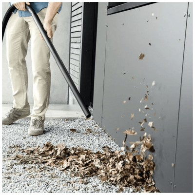 Usisavač ima i praktičnu funkciju puhanja, koja se može koristiti na mjestima gdje je usisavanje otežano. Prostor za pohranu na glavi stroja služi za sigurno pohranjivanje alata i malih dijelova kao što su vijci i čavli.
