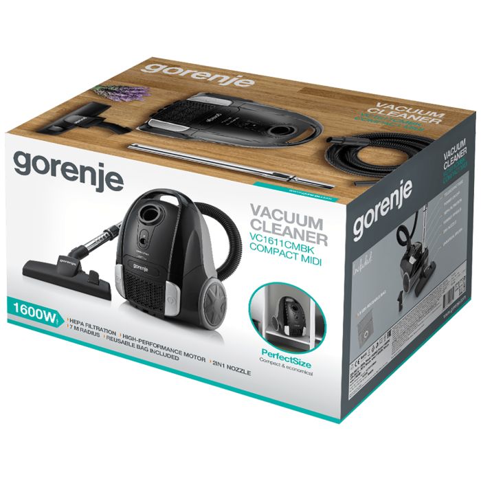 Gorenje Usisavač sa vrećicom, 1600 W, COMPACT MIDI - VC1611CMBK