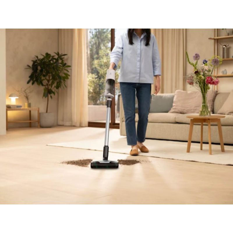 Bežicni usisavac 600 dizajniran je za cišcenje svih površina i namještaja bez napora, za rezultat besprijekorne cistoce. Ima visoku stopu sakupljanja prašine i funkcije brzog otpuštanja za laki prijelaz medu zadacima. Zahvaljujuci dugorocnom DC motoru i njenim jedinstvenim cekinjama, cetka PowerPro multi-surface besprijekorno uklanja prašinu – do 99 % na tvrdim podovima u jednom dvostrukom potezu cišcenja sitne prašine. Potpuno cišcenje svakim zamahom. Poboljšano ciklonsko odvajanje smanjuje zacepljenja filtra, što rezultira najboljom performansom. S do 50 minuta neprekidnog usisavanja rucnom jedinicom u jednom potezu možete ocistiti više površina. Visokokvalitetna baterija sa šest celija osigurava neprekidno cišcenje na svim površinama. Jednostavno ispraznite spremnik za prašinu kapacitet