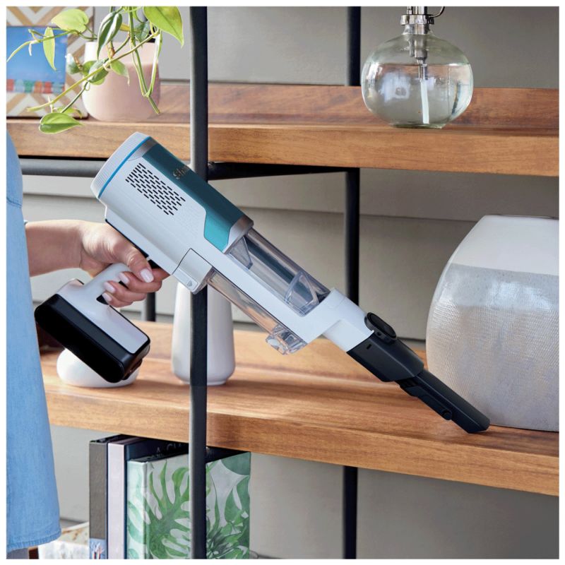 Lako odvojite ručni usisivač za čišćenje uz pomoć priloženih dodataka. Efikasno uklonite prašinu, prljavštinu i dlake kućnih ljubimaca s namještaja, automobila i drugih površina.