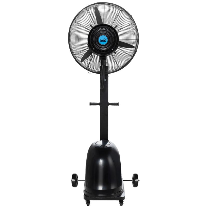 Tri stupnja brzine, domet 10 met., ovlaživanje 0 - 5 lit. / h, promjer lopatica 64 cm, maksimalni volumen zračne mase 150 m³ / minut, podesiv kut ventilatora, kapacitet spremnika za vodu 49 lit., snaga ventilatora 300 W, razina buke 57 dB, ručke i kotači za laku pokretljivost, napajanje 230 V ~ / 50 Hz, dimenzije 570 x 650 x 2000 mm