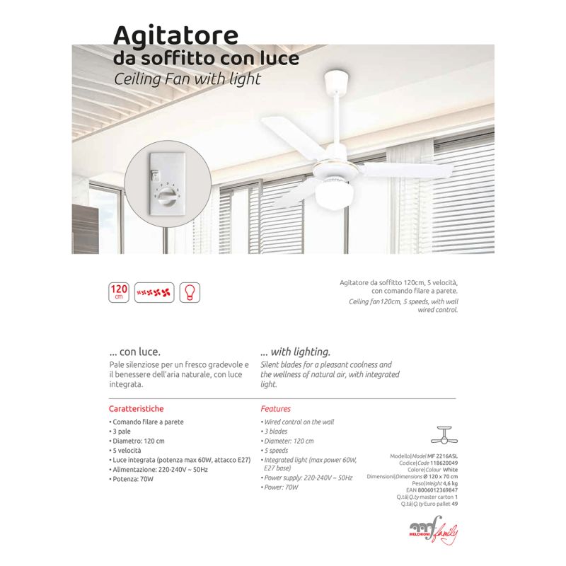 MELCHIONI family Ventilator stropni sa rasvjetom, 70W - MF 2216ASL