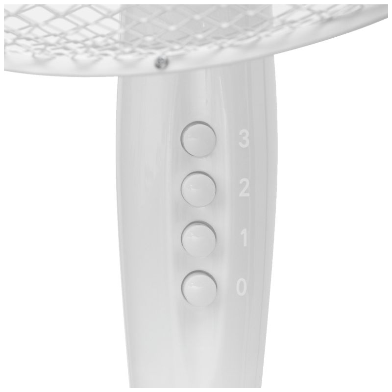 Promjer lopatica ventilatora od 40 cm pruža snažan protok zraka koji brzo hladi prostoriju. Tri postavke brzine omogućuju prilagodbu intenziteta protoka zraka specifičnoj situaciji i temperaturi. Preklopna funkcija osciliranja osigurava ravnomjernu raspodjelu zraka po prostoriji, dok podesivi kut nagiba glave omogućuje usmjeravanje zraka točno u željenom smjeru.