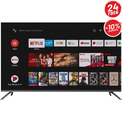 Opremljen Android operativnim sistemom, ovaj televizor nudi pristup širokom spektru aplikacija i streaming servisa kao što su Netflix, YouTube, Disney+ i mnogi drugi. Intuitivan korisnički interfejs omogućava lako kretanje kroz sadržaj i personalizaciju postavki prema vašim preferencijama. Glasovne komande dodatno olakšavaju korištenje, omogućavajući jednostavno upravljanje televizorom putem Google Assistant-a.