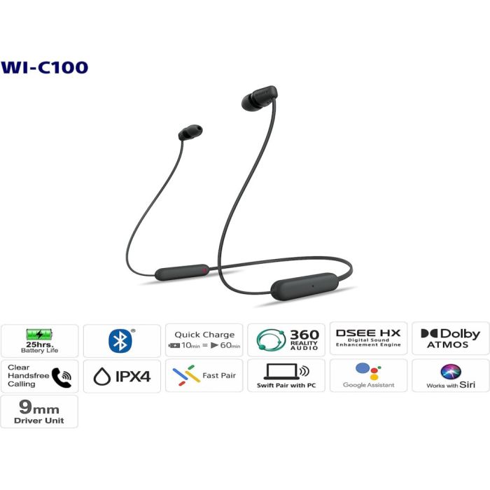 Sony slusalice WIC100, crnein-Ear Bluetooth sa mikrofon
